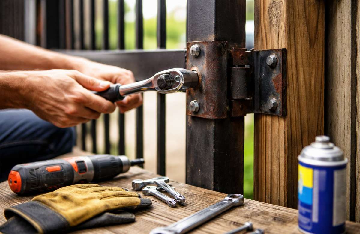 Rust is the most common culprit. Loose bolts are a close second. Sometimes it’s just age. And sometimes someone backed a car into it and now everything’s bent. Whatever happens, the gate usually starts showing signs early — sagging, sticking, not latching right. At that point most homeowners start googling gate hinge repair or replace just trying to figure out their next step. Totally understandable.
